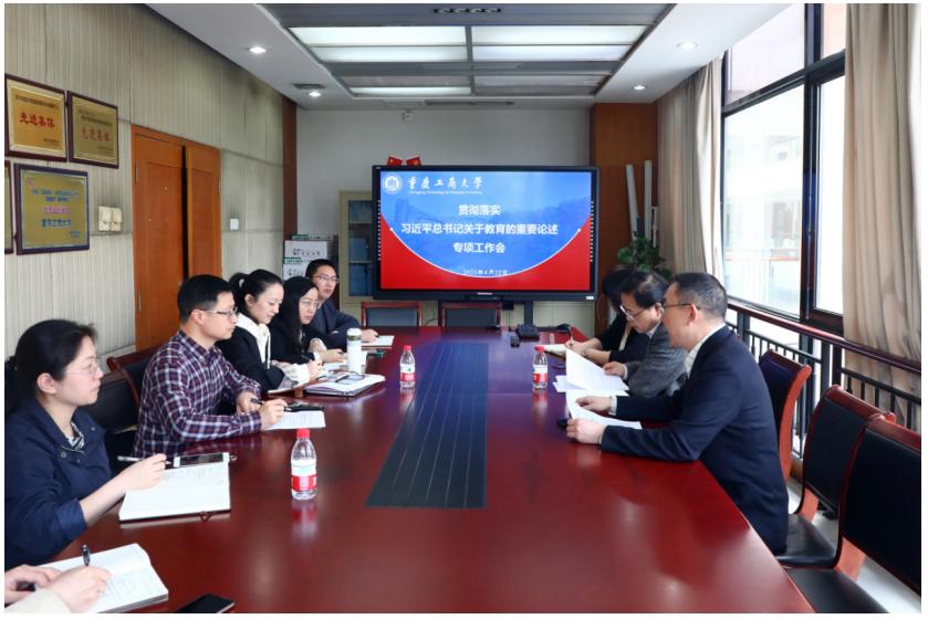 工作会上,教务处副处长宋瑛传达学习了市教委关于《习近平总书记教育重要论述讲义》培训会精神。马克思主义学院院长杨维东介绍了《习近平总书记教育重要论述讲义》进《习近平新时代中国特色社会主义思想》课程和《形势政策》课堂的做法。华杰对我校前期开展的相关工作做了介绍,并对下一步宣传工作进行了安排。何勇平在讲话中强调,要深刻认识习近平总书记关于教育的重要论述对我们开展工作的指导意义,要从课堂教学、干部培训、课题研究、政治理论学习等方面抓好学习宣传和贯彻落实,确保学深学透、入脑入心。