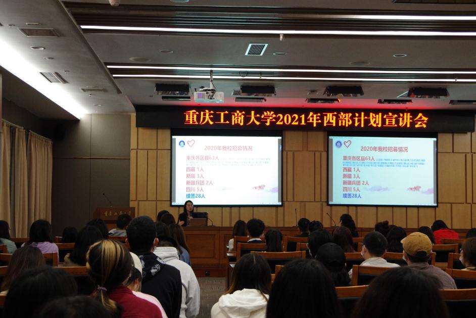 历年来,我校积极响应团中央、团市委的号召,认真开展西部计划工作,自实施起共选派近千名志愿者赴西藏、新疆和重庆各区县服务,学校也连续5次获评“全国西部计划优秀项目办”。2021年,我校西部计划工作已正式启动,宣讲会后校团委将按照市项目办的要求,进行报名资格审查、招募信息发布、推荐选拔等各项工作,为毕业生服务基层服务西部搭建好平台,提供好服务。