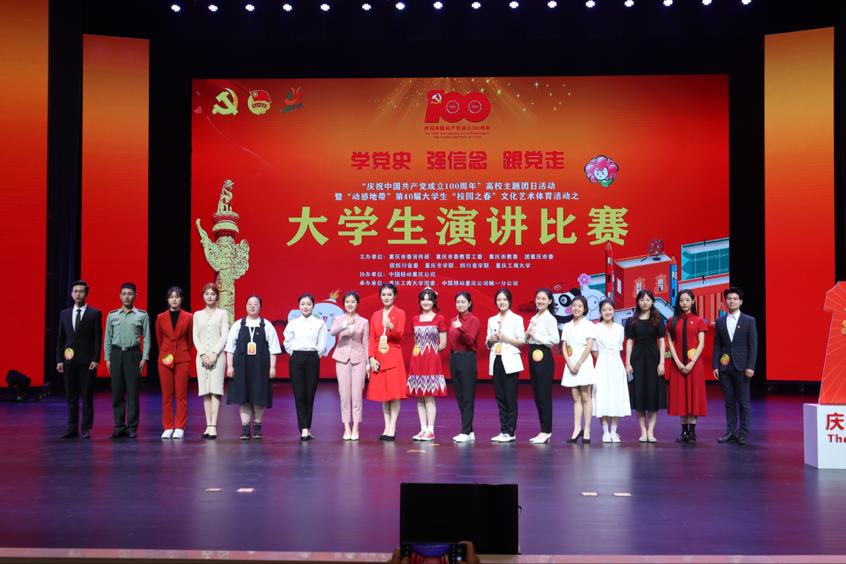 5月14日下午,庆祝“中国共产党成立100周年”高校主题团日活动暨“动感地带”第40届大学生“校园之春”文化艺术体育活动大学生演讲比赛决赛在我校南岸校区剧场隆重举行。共青团市委高校部一级调研员李霞、我校副校长李国军出席活动,全市各高校青年学生代表共计五百余人共同观看了本次比赛。