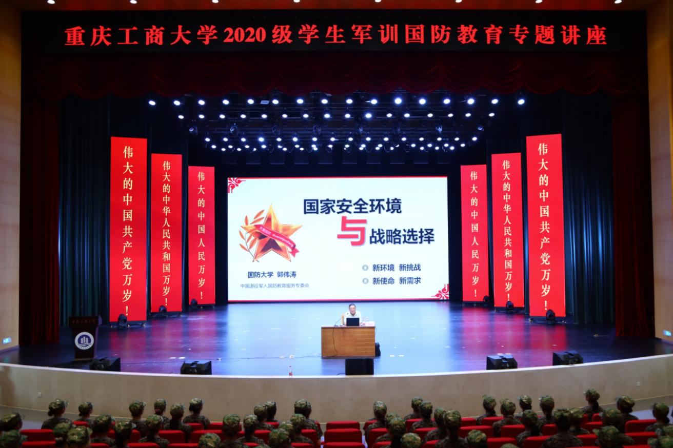 为配合做好2020级学生军训工作,增强学生国家意识和国防意识,提升军训实效,7月9日下午,我校党委武装部在南岸校区剧场举办国防教育专题讲座。校党委常委、副校长李国军,党委常委、党委宣传部部长华杰,校纪委委员、党委保卫部部长钱忠坤,党委武装部部长申卫东,以及570多名军训学生一起聆听了讲座。