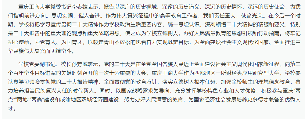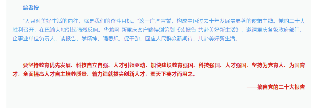 华龙网在《读报告·共赴美好新生活》专题中报道我校党委书记李志雄、校长孙芳城学习党的二十大报告感悟