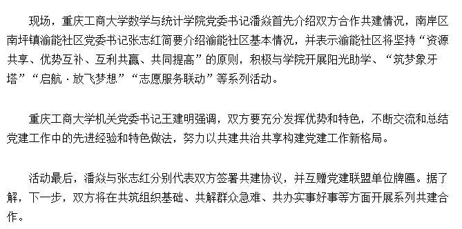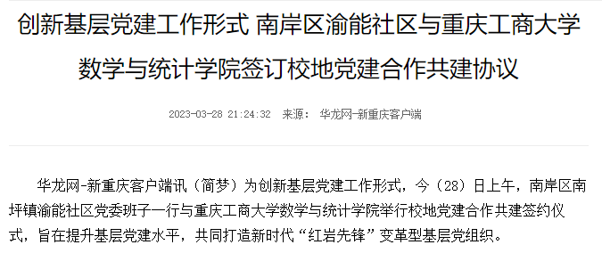 华龙网报道我校数学与统计学院和南岸区渝能社区开展校地党建合作
