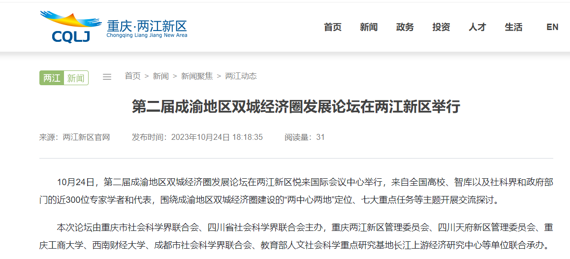 我校参与承办的第二届成渝地区双城经济圈发展论坛受多家主流媒体报道