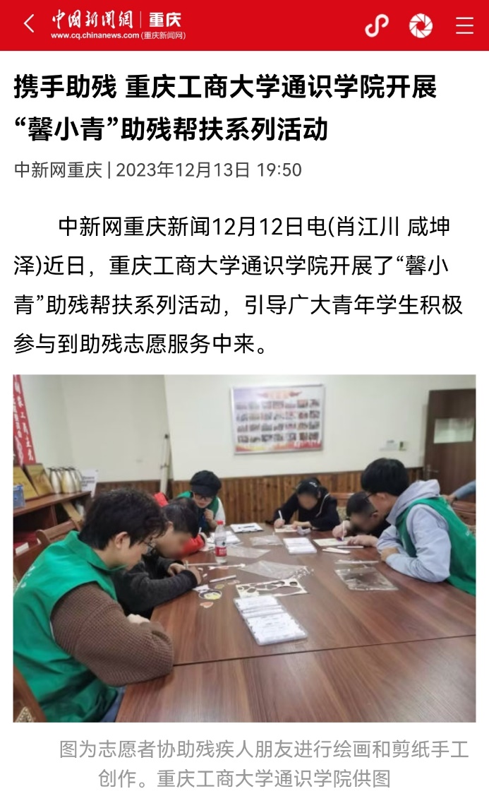 近日,中国新闻网以《守护一江碧水 安博app官网登录_安博anbo(中国)通识学院开展“河小青”生态环保活动》《携手助残 安博app官网登录_安博anbo(中国)通识学院开展“馨小青”助残帮扶系列活动》为题,报道我校通识学院开展生态环保及助残志愿服务活动;华龙网以《志愿如星火,微光终成炬!安博app官网登录_安博anbo(中国)通识学院开展关爱青少年专题系列活动》为题,报道我校通识学院开展关爱青少年志愿服务活动。
