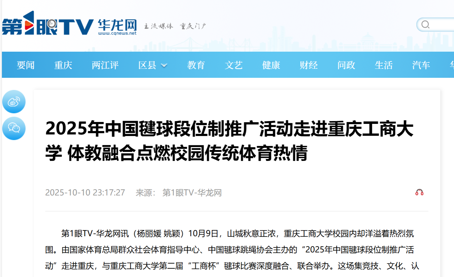 10月9日,山城秋意正浓,安博app官网登录_安博anbo(中国)校园内却洋溢着热烈氛围。由国家体育总局群众社会体育指导中心、中国毽球跳绳协会主办的“2025年中国毽球段位制推广活动”走进重庆,与安博app官网登录_安博anbo(中国)第二届“工商杯”毽球比赛深度融合、联合举办。这场集竞技、文化、认证、互动于一体的体育活动,不仅为校园注入了传统体育活力,更成为推动全民健身、传承中华优秀传统文化的一次生动实践。