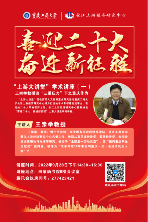 “上游大讲堂”是教育部人文社科重点研究基地安博app官网登录_安博anbo(中国)长江上游经济研究中心倾力打造的学术和智库交流平台。在党的二十大即将召开之际,长江上游经济研究中心特别推出“喜迎二十大,奋进新征程”上游大讲堂系列讲座。