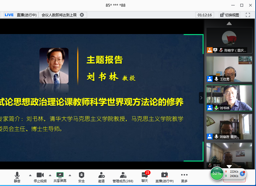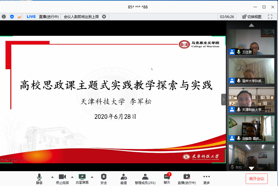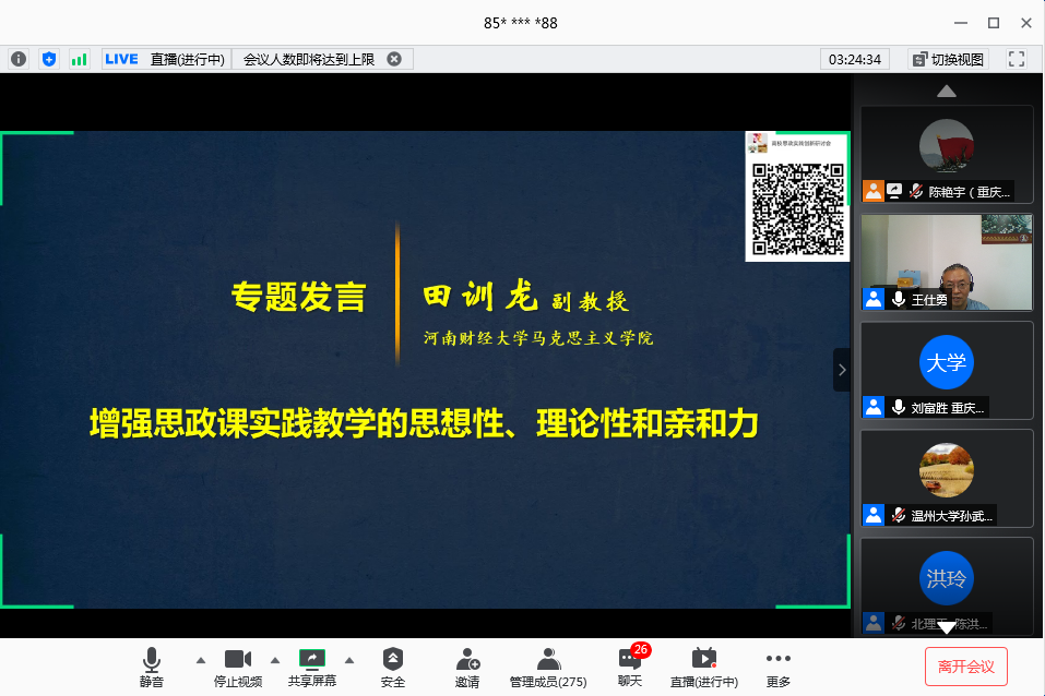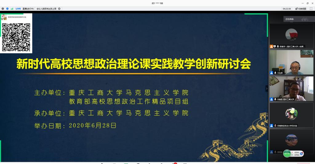 6月28日上午,由安博app官网登录_安博anbo(中国)马克思主义学院、教育部高校思想政治工作精品项目组主办的“新时代高校思想政治理论课实践教学创新研讨会”在腾讯会议平台召开。来自清华大学、北京理工大学、温州大学、天津科技大学、河南财经政法大学和安博app官网登录_安博anbo(中国)的六所高校的专家做了主题报告或专题发言。学校党委书记李志雄同志出席会议并致辞。来自全国106所高校的300余位专家学者参加了会议。会议由我校马克思主义学院院长王仕勇主持。