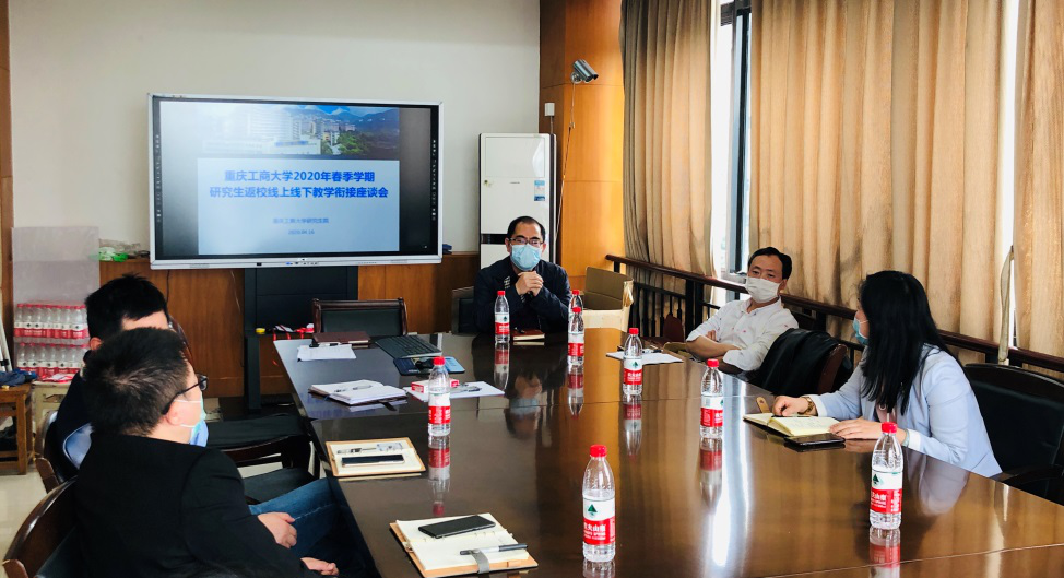 为全面落实重庆市教委发布的全市各级各类学校2020年春季学期实行分批有序开学的相关通知,保障我校开学前后研究生教育教学秩序和质量,切实做好线上、线下教学的有效衔接工作,研究生院于4月16日上午邀请社会与公共管理学院、数学与统计学院、环境与资源学院、财政金融学院、商务策划学院、管理学院等研究生培养单位主管研究生教学相关领导,召开了“研究生返校线上线下教学衔接”座谈会。座谈会由研究生院副院长王燕主持。