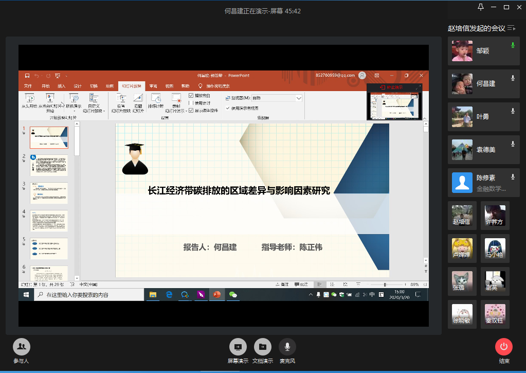 3月20日下午,答辩专家与研究生们线上“云答辩”正式开始。除2020届19名统计学硕士毕业生参加预答辩外,部分2018级和2019级研究生进入视频会议进行了观摩学习。