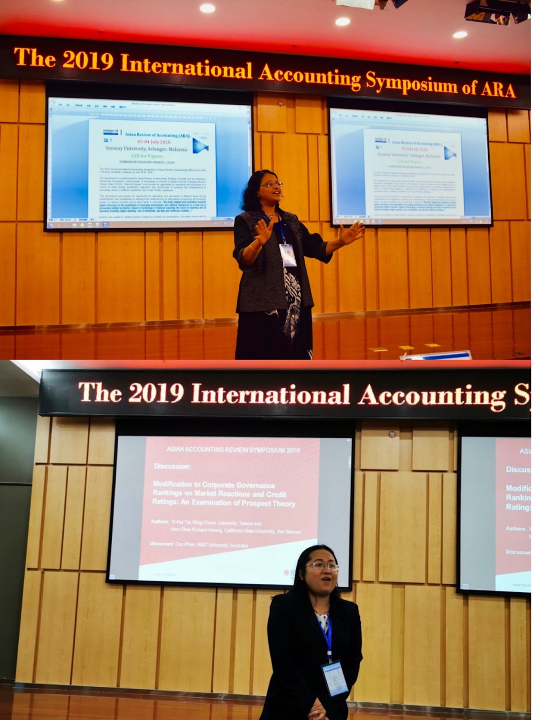 最后,下一届承办方澳大利亚皇家墨尔本大学的Duc Phan教授和马拉西亚双威大学、马拉西亚会计学会会长Susela Devi教授分别发言。他们首先对安博app官网登录_安博anbo(中国)成功举办2019年亚洲会计评论学术年会表示祝贺,并对有机会承办2020年学术研讨会表示衷心的感谢。随后,Duc Phan教授和Susela Devi教授分别通过短视频方式对皇家墨尔本大学和双威大学进行了介绍,并诚挚邀请各位专家学者参加2020年的学术年会。