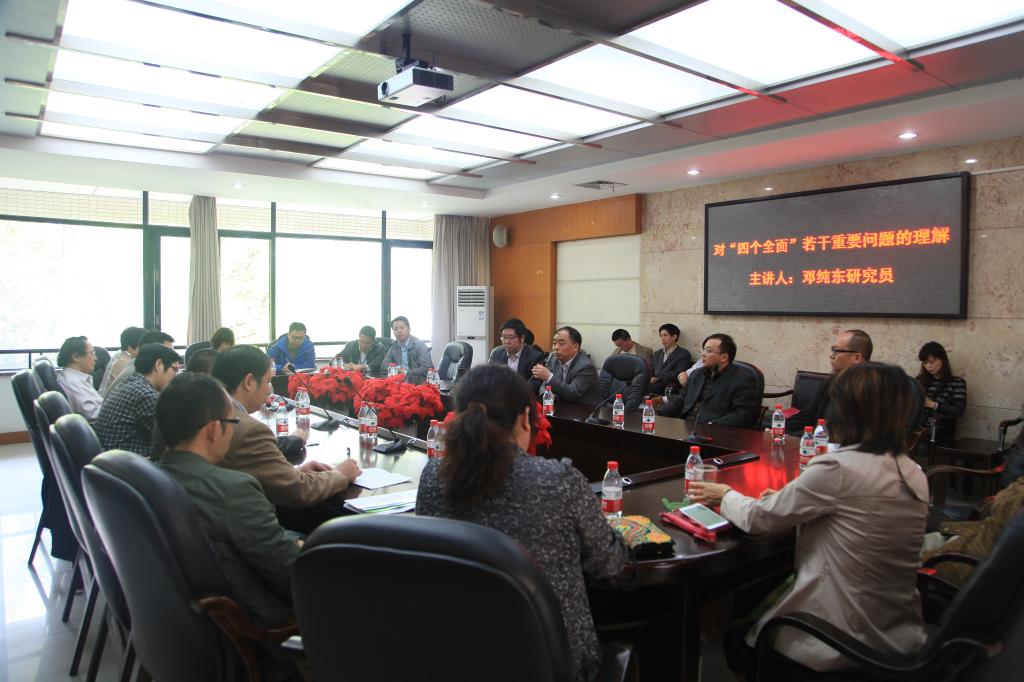 接着,以对“四个全面”若干重要问题的理解为题,邓纯东院长与市委宣传部、市社科院和我校的部分专家学者就相关问题进行了学术研讨。