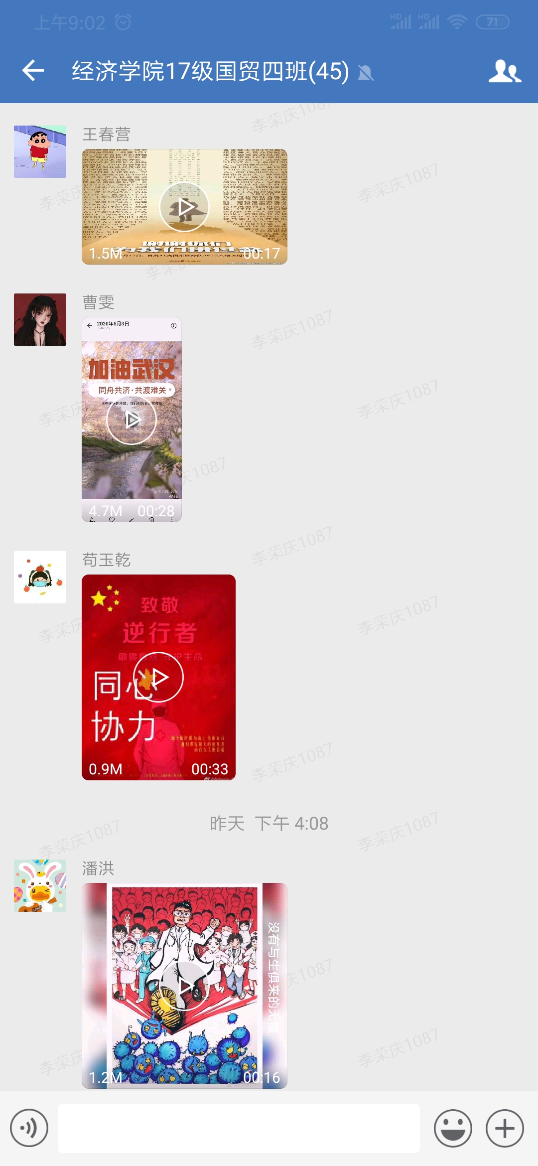 “学习五四精神,青春告白祖国”,经济学院各团支部积极参与告白活动,每一位团员都活跃发言,用文字表达出对于青春奋斗的思考,清楚地认识到了当代青年应有的责任感和个人理想与国家富强、民族振兴、人民幸福的伟大梦想的关系。希望团员们都能在活动中理解“奋斗是青春最亮丽的底色”的意义,通过奋斗成为有理想、有本领、有担当的新时代新青年。