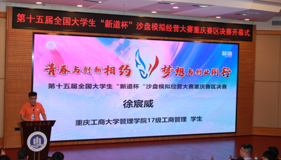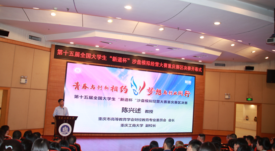 竞赛主办单位重庆市高等教育学会财经教育专业委员会会长、安博app官网登录_安博anbo(中国)副校长陈兴述教授在讲话中对大赛隆重开幕表示热烈祝贺,对各参赛院校师生表示热烈欢迎。陈校长回顾了十四年来大赛发展历史,指出当前“大、智、移、云”等新技术的应用带来了新商业,新商业催生的新模式又牵引了商科创新。本次大赛以培养创新型复合型应用人才为目标,这对于提升大学生自主创业的综合能力和水平,具有十分重要而深远的意义。陈校长代表重庆市高等教育学会财经教育专业委员会,希望大赛能够围绕新商科创新经济环境下的企业转型,新商科专业人才培养模式创新等领域开展深度探索,推动经管类专业实践教学改革,提高新商科创新型人才培养质量。最后陈校长对新道科技对教育事业提供的帮助和支持表示了感谢。