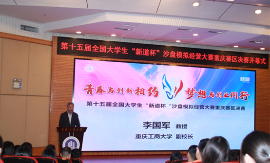副校长李国军教授在开幕式上致欢迎辞。李校长首先向主办单位重庆市高等教育学会财经教育专业委员会、新道科技股份有限公司的辛勤付出表示感谢,向前来参与本次大赛的兄弟院校和社会各界表示热烈欢迎。随后,李校长向参赛院校师生介绍了学校总体概况、管理学院和经管实验中心的基本情况,回顾了安博app官网登录_安博anbo(中国)学生参加沙盘大赛的历史和成绩,高度评价了沙盘大赛在“推动高校与行业、企业的深度合作,资源共享,搭建高校之间学习、交流的平台”方面发挥的积极影响。李校长祝愿大赛“产教融合、协同育人”的理念扎根重庆、开花结果,在培养推动大学生学术科技创新,促进青年学生全面发展方面发挥出更大作用。