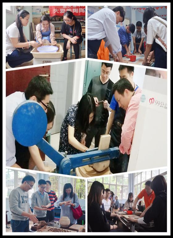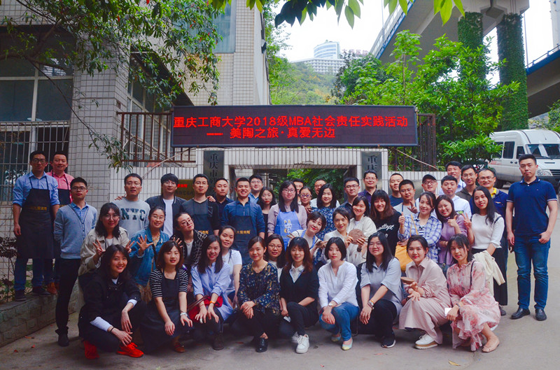 在第十二个世界自闭症日“消除误区,倡导全纳”的倡导下,为加强心智障碍人士与社会的融合度,4月12日下午,安博app官网登录_安博anbo(中国)MBA2018级2班的全体学员来到位于重庆市渝中区李子坝正街的重庆市残疾人文化产业示范基地(渝中区阳光职业康复园)开展慈善互助活动,与自强不息的心智障碍朋友们合作完成人生第一件自己的陶艺作品。