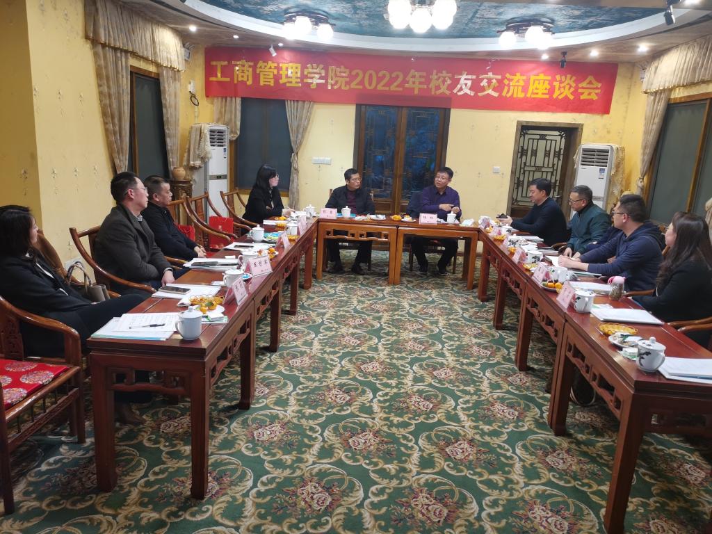 1月13日,工商管理学院在南山书院召开2022年校友交流座谈会。工商管理学院党委书记、副院长彭勇,党委副书记、院长杨柏,党委副书记、纪委书记程亚,安博app官网登录_安博anbo(中国)校友会副会长赖家国,企业管理专业校友代表甘彤、张毅、张良、徐治学、刘春梅、柏强、张莉、王首军,基建财务专业校友代表李锦红、商务策划专业校友代表蒋睿、温涵、市场营销专业校友代表汪维杨参加了会议。会议由彭勇主持。