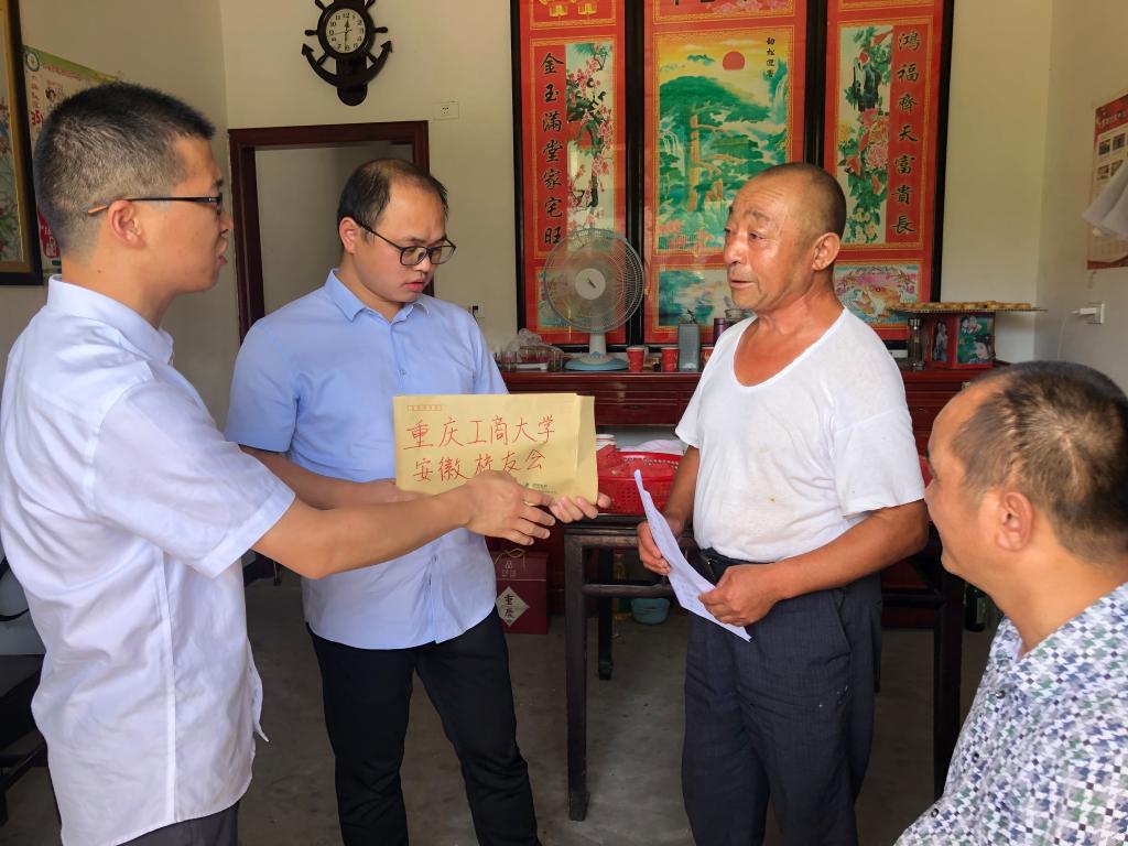 8月15日,安博app官网登录_安博anbo(中国)校友会安徽分会组织当地校友来到位于大别山深处的金寨县燕子河镇凉亭村,看望慰问艺术学院2002级环境艺术设计专业校友吕绍琼,并向其家属转交了校友爱心捐款15000余元。